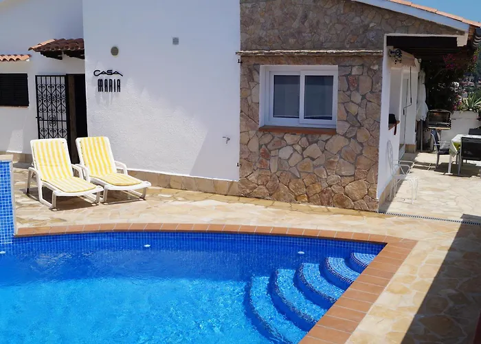 Willa Maria dysponuje pełnowymiarową kuchnią z kuchenką mikrofalową i lodówką. Goście mogą spróbować dań kuchni śródziemnomorskiej w restauracji Restaurant Tennis Canyelles w odległości 13-minutowego spaceru. Willa dysponuje tarasem, na którym można zrelaksować się po męczącym dniu, a także prywatny basen kąpielowy.